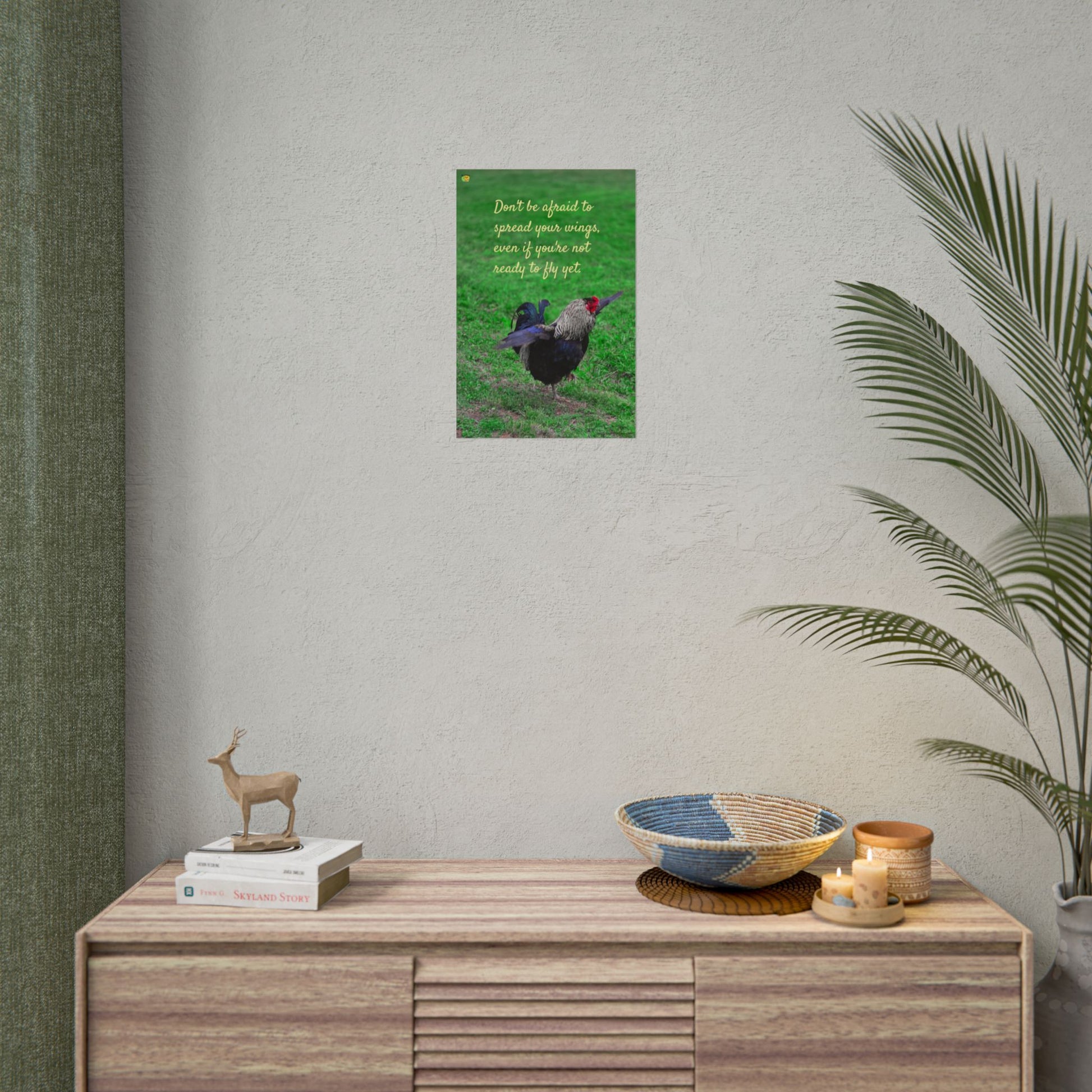 Here we have a rooster that was captured spreading his wings. This is a reminder that even if you're not sure if you can do anything with them, that doesn't mean you shouldn't stretch them out and give them a good flap every once in a while.